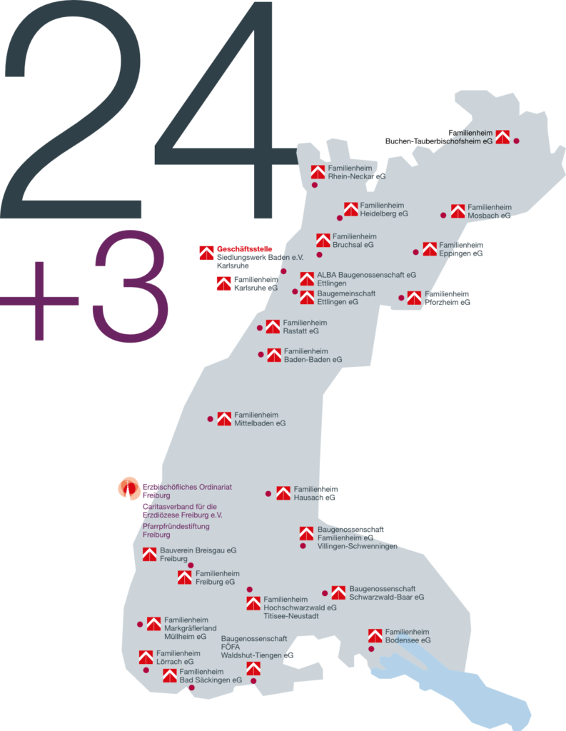 Die erste Nachkriegsgenossenschaft war die 1946 von Hettingens Pfarrer Magnani gegründete „Neue Heimat Buchen“, ihr folgten in den Jahren danach 27 weitere Genossenschaften. Selbst- und Nachbarschaftshilfe war in den Anfangsjahren groß geschrieben, wie der Einladung der Genossenschaft zum ersten Baubeginn zu entnehmen ist: „Jeder ist als Helfer willkommen und soll Pickel und Schaufel mitbringen“. Schon 1947 konnten erste Siedlungshäuser bezogen werden, nach wenigen Jahren waren es bereits mehrere hundert. 1957, beim 10-jährigen Jubiläum des Siedlungswerkes waren 14.356 Wohnungen in Eigenheimen und 4.895 Mietwohnungen erstellt worden. Die Mitgliedsgenossenschaften nennen sich dem Beispiel der ältesten Genossenschaft „Familienheim Freiburg“ folgend „Familienheim“ und bekennen damit auch für die Zukunft Programm und Aufgabe.